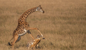 /23/04/2020// Disa foto dramatike tregojnë momentet kur një xhirafë përpiqet më kot të mbrojë këlyshin…