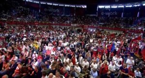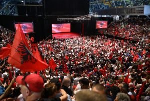 Fotot e sallës se mbushur me mijëra shqiptarë në takimin e kryeministrit Edi Rama në…