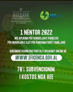 Prej dites se djeshme (1 Nentor 2022) ka nisur aplikimi për subvencion për panele diellore…