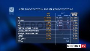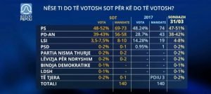 Nëse do të votohej sot, PS fiton shumicën e ulëseve në Kuvendin e ardhshëm, me…