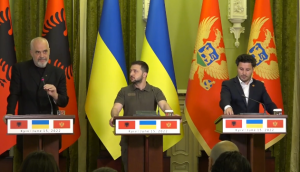 Në konferencën e përbashkët për shtyp me presidentin ukrainas dhe kryeministrin malazez Dritan Abazoviç nga…