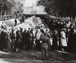 Qytetarët gjermanë të detyruar të shohin viktimat e kampeve të përqendrimit, 1945. Qytetarët gjermanë të…
