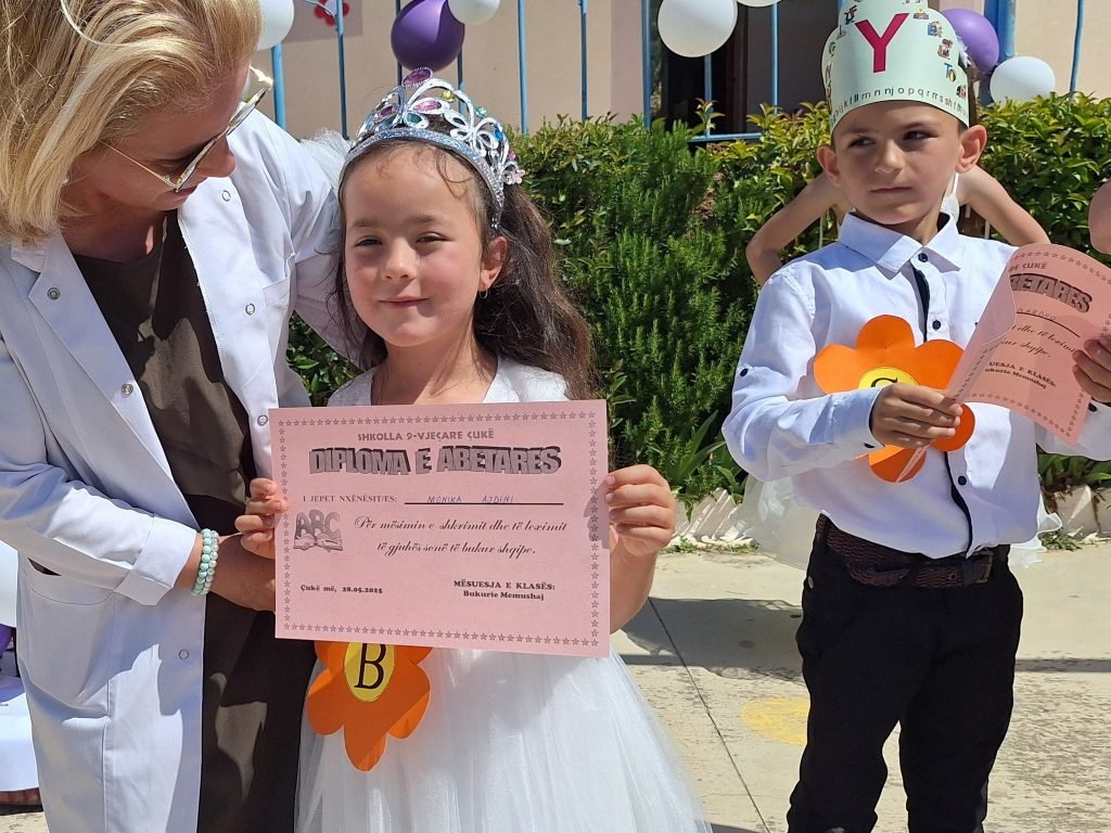 Të dashur fëmijë, sot ju nuk jeni më fillestarë, ju dini të lexoni, të shkruani dhe të shprehni mendimet tuaja. Kjo është një arritje që meriton vlerësim! Ju jeni krenaria jonë!-vuri ne dukje drejtorja e shkolles Çukë Violeta Shehu.