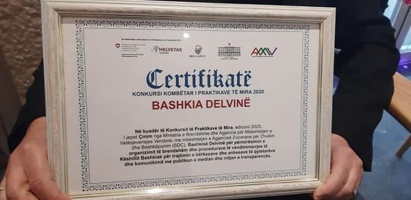Bashkia e Delvines eshte vleresuar se fundi me Cmimin për PRAKTIKAVE TË MIRA 2020 .