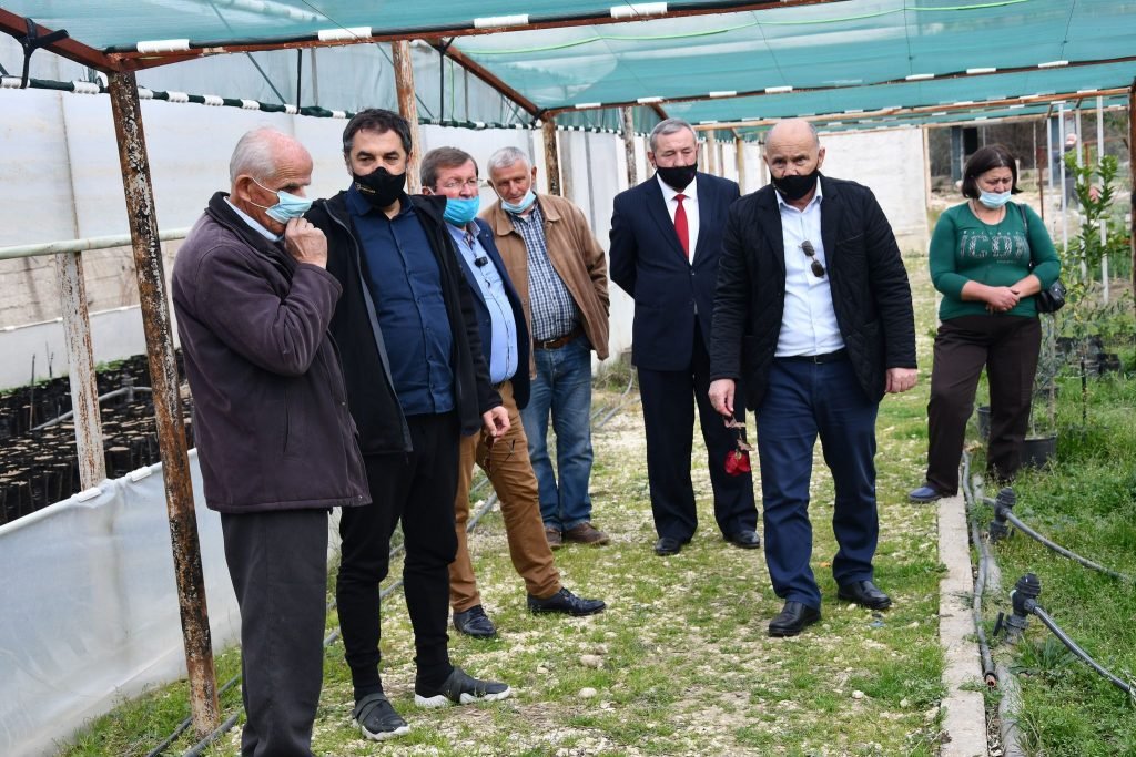 Kreu i dikasterit te Bujqesise Blendi Cuci dhe zevendesi i tij Dhimiter Kote, pas Xarres kane zhvilluar sot nje vizite pune ne Fidanishten “MICI” ne Livadhja ku jane pritur nga Dhimiter Miçi.