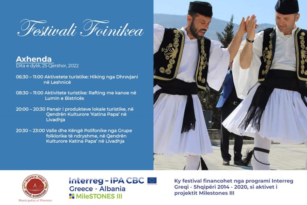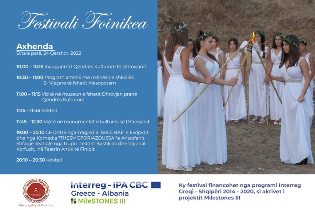 “FESTIVALI FOINIKEA” perfshin nje manifestim kulturor artistik te folkut tradicional grupe nga rajoni Finiq-Sarande-Dropull, etj,.