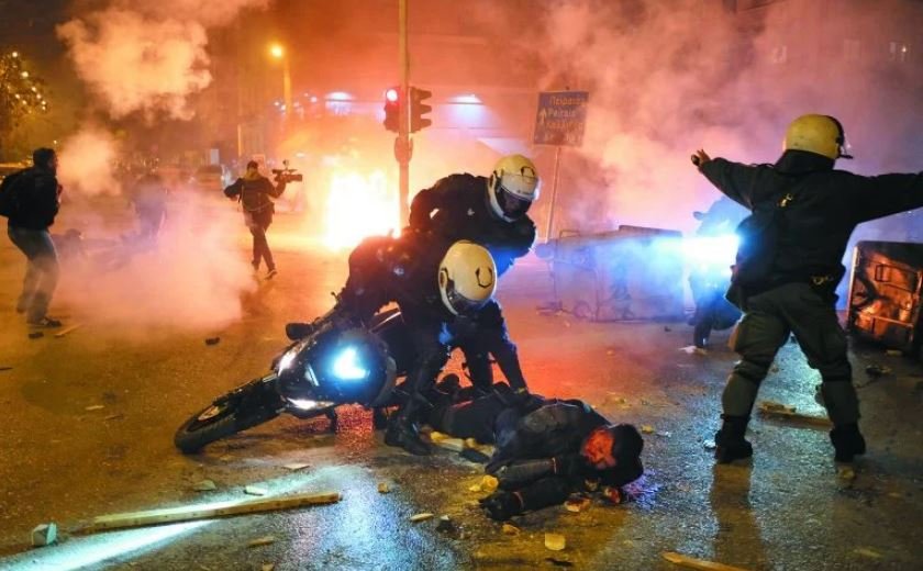Përplasje, goditje, molotov dhe gaz lotsjellës, sheshi i Nea Smyrni u kthye në shesh betejë. Fillimisht u rrethua dhe sulmua një stacion policie, më pas protestuesit u përleshën me policët.