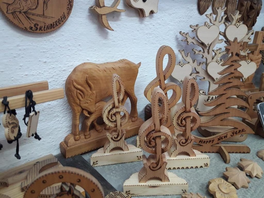 “Përgjatë kësaj periudhe festash kam realizuar në drugdhendje zbukurime dekorative”, shprehet drugdhendësi gjirokastrit, ndërsa me daltë vazhdon të ravijëzojë konturet e bredhit në copëzën e drurit. “ Ne, artizanët e Pazarit të gurtë, tashmë e kemi bërë traditë që në periudhën e festave të fundvitit të përgatitim punime dhe suvenire karakteristikë, për zbukurimin e mjediseve apo për t’i patur si kujtim nga udhëtimi i fundvitit në Gjirokastër”, pohon drugdhendësi Anastas. Në mjediset e qendrës së tij të artizanatit janë ekspozuar dekoracione të ndryshme, të gdhendura në dru apo punuar në pirografi, bredhat simbolikë të festës, punime dhe ornamente me motive floreale, etj të gjitha të realizuara me kujdes dhe pasion. Për mjeshtrin drugdhendës krahas dobishmërisë për zbukurimin e mjediseve, kryesisht familjare, këto punime karakteristike janë edhe një mënyrë urimi për festat e fundvitit. “Gjatë këtyre ditëve në Gjirokastër ka patur dhe turistë, të cilët kanë marrë si suvenir nga udhëtimi i tyre punime dhe suvenire karakteristike”, shprehet drugdhendësi gjirokastrit. Motivet e festave të fundvitit kanë tërhequr edhe artizanet e qëndisjes tradicionale.