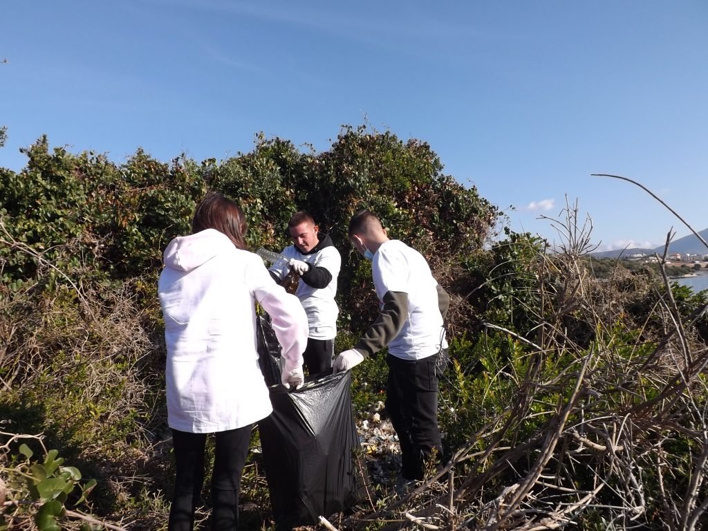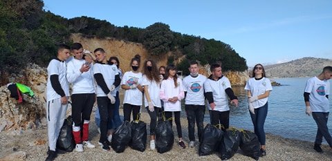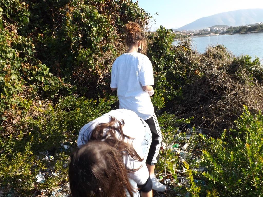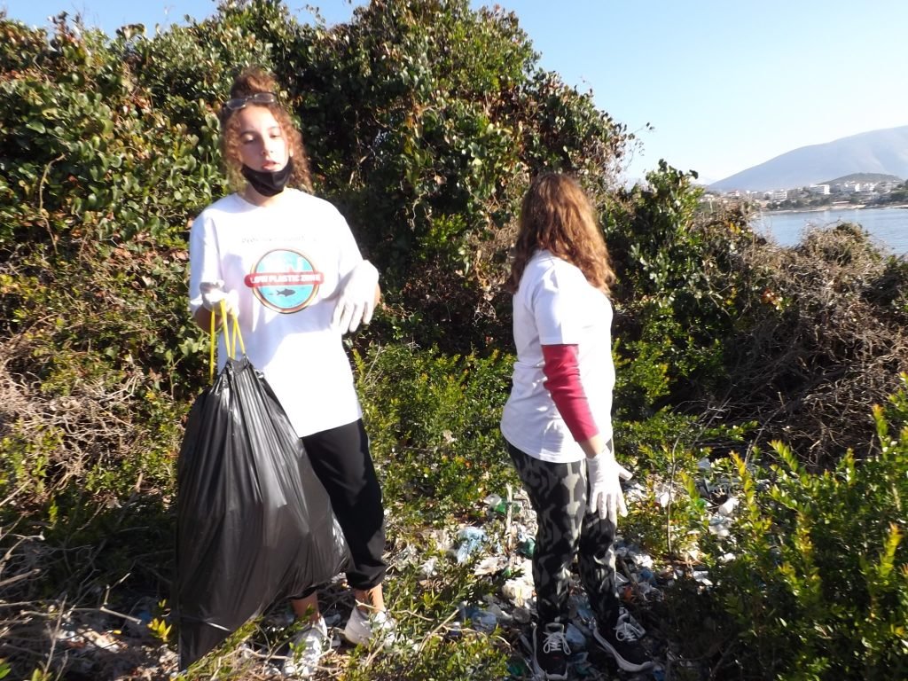 –Nje grup me te rinj, vullnetare mjedisore te shkolles ne Ksamil u pefshine sot ne pastrimin e plastikes nga ishujt.