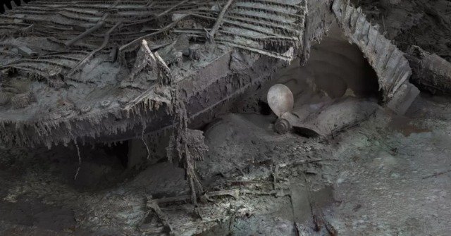 Harku, tashmë i mbuluar me stalaktite ndryshku, është ende i dallueshëm menjëherë edhe 100 vjet pas humbjes së anijes. Në krye është kuverta e varkës, ku një vrimë e hapur ofron një vështrim në një zbrazëti ku dikur qëndronte shkalla madhështore.