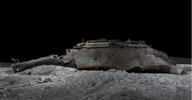 Skanimi i ri tregon rrënojat në tërësinë e tij, duke zbuluar një pamje të plotë të Titanikut. Ai shtrihet në dy pjesë, me harkun dhe skajin të ndarë me rreth 800 m. Një fushë e madhe mbeturinash rrethon anijen e thyer.