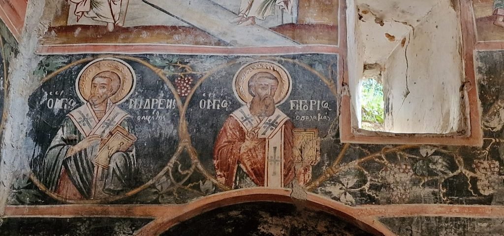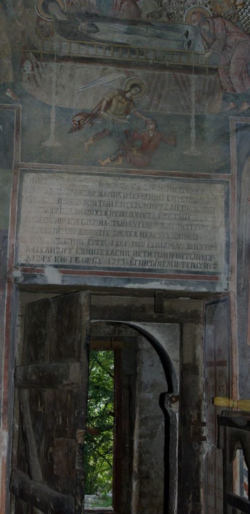 . Mbi portën jugore, brenda kishës së Manastirit të Shën Thanasit, Leshnicë gjendet i pikturuar një mbishkrim: “Ky tempull i gjithnderuar dhe hyjnor i atit tonë ndër shenjtorë Shën Thanasit të madh i Manastirit të Gjermanonit u stolis dhe u zbukurua me shpenzimet e etërve të tij, me mbikqyrjen e Krisanthit jeromonakut dhe igumenti të tij. Në kohën e peshkopit tonë të Drinopojës Kir Gabriel të etërve present dhe jeromonak të Dhionisit, Zakehut, Meletit, Joaniqit, Papa Qirjaqi dhe Zosima, me 1801 muaji qershor 28. Me dorën time të Llazarit nga Ano Sudhena së bashku me nxënësit e mi Lazarin dhe Gjergjin. Më 1797 u bënë themelet e këtij tempulli.”///