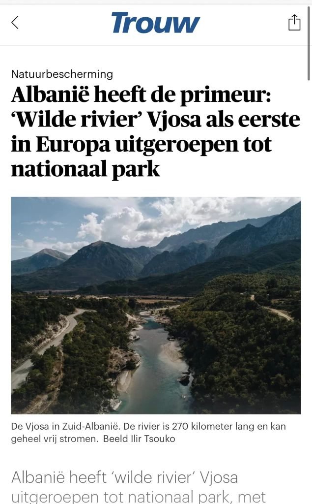 Vendimi i qeverisë shqiptare për shpalljen e Vjosës “Park Kombëtar” ka pasur jehonë në mediet ndërkombëtare.