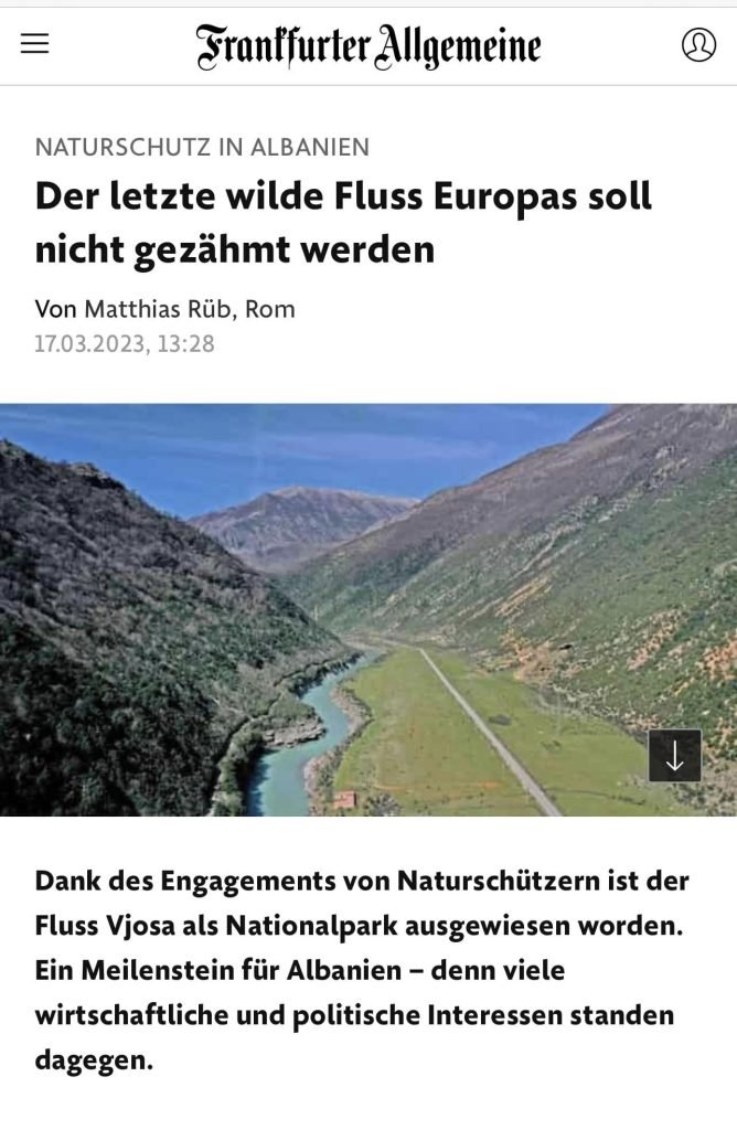Lumi i Vjosës, si lumi i fundit i egër në Europë, u shpall më 13 mars nga qeveria shqiptare “Park Kombëtar”, kategoria e dytë e mbrojtjes, që është shumë më e lartë nga ajo që kishte deri një vit më parë, thjesht “Park Natyror”.