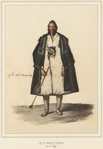 Piktori francez Luis Dypre para se të vizitonte Pashallëkun e Janinës qendroi në Korfuz. Aty njohu dhe takoi shumë shqiptarë që kishin qenë pjesë e regjimentit “Gjuajtësit e Orientit” të krijuar nga francezët e të mbështetur më vonë dhe nga britanikët. Mes portreteve që realizoi bie në sy ai i Foto Bikos nga Suli. Përveç kostumit tradicional shqiptar, modës së flokëve të gjata alla shqiptarçe por arbërore si i përmend dhe Gjon Muzaka tek Kronika e tij, bien në sy koburet gjarpërushe dhe krahas tyre dividi-mbajtësi i penës, të gjitha të lara me argjend.