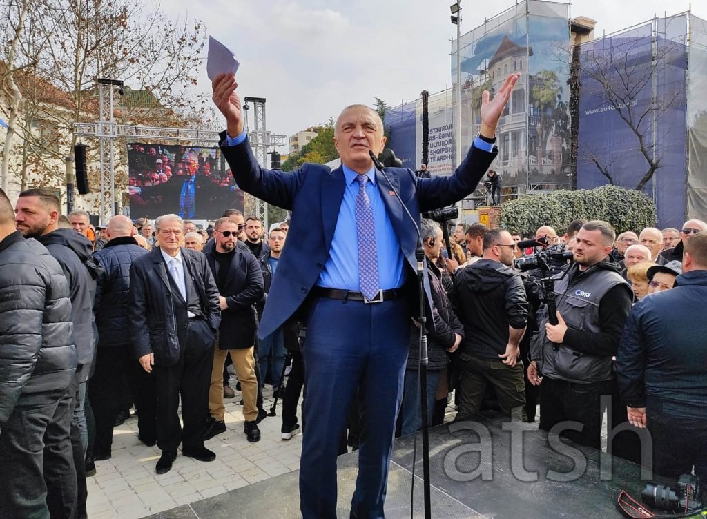 Kryetari i Partisë së Lirisë, Ilir Meta iu drejtua demonstruesve para selisë së Kuvendit.