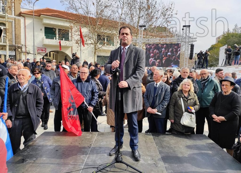 “Kjo protestë e fuqishme është në mbrojtje të vlerave dhe interesave më themelore të qytetarëve shqiptarë. Në këtë protestë të fuqishme para parlamentit të pushtuar nga krim-ministri Edi Rama dhe banda e tij kriminale. Në këtë protestë, në të cilën ju mbështesni jo vetëm deputetët tanë, me qëndrimin e tyre të shkëlqyer në mbrojtje të interesave tuaja dhe të shqiptarëve në parlament, por mbështesni dhe jeni zëri i vërtetë i çdo shqiptari, kudo që ndodhet ai, por që konsideron Edi Ramën, ministrat e tij, si armiqtë e egër të qenies tonë, të demokracisë sonë, të miqve tanë. Për të gjithë qytetarët e këtij vendi që ndjekin zhvillimet në seancën e parlamentit, apo këtë protestë, duhet t’i qartësoj se kjo është një betejë për mbrojtjen e Kushtetutës, e cila shkelmohet nga banditët, nga porositës të vrasjeve, nga padronë të klaneve të drogës, krimit. Kjo Kushtetutë, në nenin e saj 70 i garanton deputetit me mbledhjen e 28 firmave, krijimin automatik të komisionit hetimor për problemet që këta 28 burra dhe gra, të votuar nga zgjedhësit shqiptarë, gjykojnë se duhet të hetojnë. Kurse trafikantë dhe kukulla pa dinjitet njerëzor të Edi Ramës, bllokojnë këtë të drejtë të deputetëve të opozitës”, tha ai.