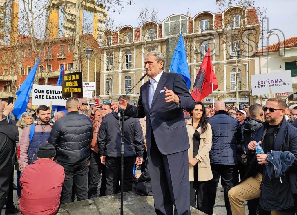 Kryetari i Partisë Demokratike, i shoqëruar nga mbështetësit e PD-së iu bashkua protestës para Kuvendit.