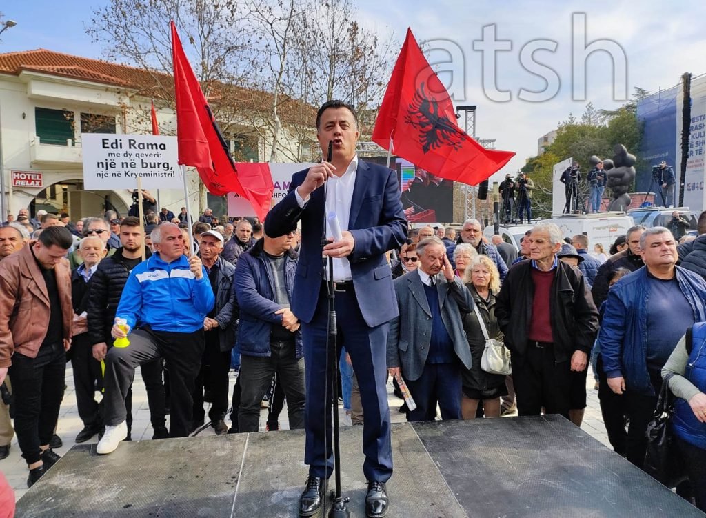 Berisha tha se, “Edi Rama realizoi 137 udhëtime me avion në dispozicion, kurse fëmijët tuaj largohen dhe vetëm largohen nga ky vend. Këta na mohojnë ne të drejtën kushtetuese të komisioneve hetimore, sepse aty do të dalin lakuriq siç janë, më të të zinj se zifti, në aferat e tyre. A mund të pranojmë ne, a mund të pranoni ju, a mund të pranojnë qytetarët shqiptarë, mohimin e kësaj të drejte themelore? Jo, kurrë! Prandaj ne do bëjmë gjithçka për sanksionimin e saj. Ju jeni këtu në protestë dhe çdo shqiptar ju mbështet me shpirt e zemër, të gjithë ata që duan që vendi të ketë një opozitë të vërtetë. Dhe që e panë se me aferën McGonigal, Edi Rama, lideri i vetëm në kontinent, kontraktoi si vrasës me pagesë, kryezbuluesin e SHBA, për të asgjësuar, për të përdorur fuqinë e institucionit të tij në asgjësimin e opozitës, de facto të demokracisë shqiptare. Kurrë nuk ka ekzistuar demokraci pa opozitë”.