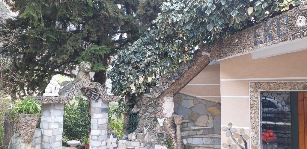 Ky oaz quhet EKOVILA edhe per shkak te dhjetra lloje bimesh, pemesh frutore, nje parku me blete, ne nje kopsht botanik te vertete. Fasadat,, harkadat, korridoret e rrugicat e kalimit gershetohen me mozaike pa fund dhe ide te flaores dhe faunes malore te ketyre aneve. Zbret shkallaret permes nje tuneli te gjelber me hardhi dhe del ne :Shesh i Miqve, i “pagezuar” keshtu nga Shemja, ku prehen miqte, dhe ku nje objekt nje katesh i teri i dekoruar me mozaike, te mberthen nga kureshtja…..Kudo, duart e mjeshtrit te gurit, Sheme…