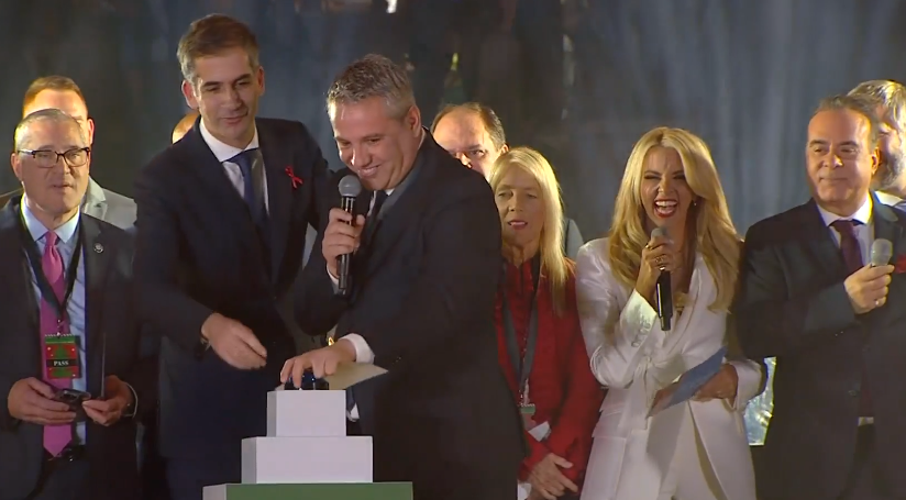 Por të parit që i ra ‘’shorti’’ të shtypë butonin për të ndezur dritat shumëngjyrëshe në këtë festë, ishte Kryetari Bashkisë Sarandë, Ardian Gurma…