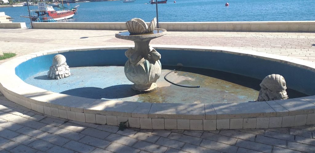 Në foto duket Shatërvani dekorativ i “tharë” nga mungesa e kujdesit bashkiak.