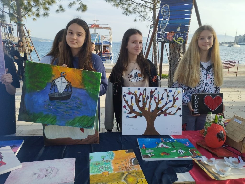 Një puhizë nga deti….dhe nxënësit derdhen gjithë ngjyrat e Jonit në peizazhe të mrekullueshme. Apo riciklime interesante dhe mjaft të bukura qe i mahniten edhe turistët e huaj qe kërkonin me ngulm t’i blinin.