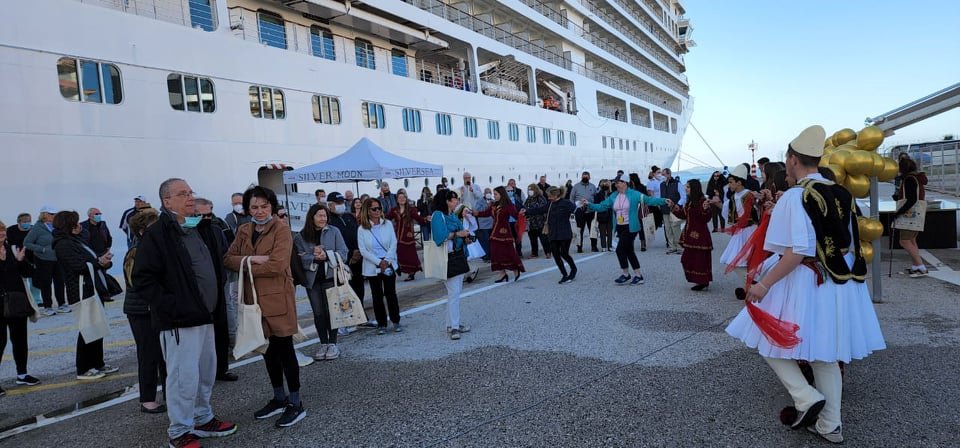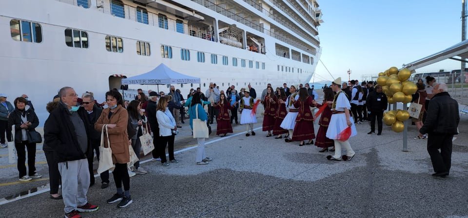 Turistët e kroçierës “SILVESTRIA” u priztën sot në Portin turistik të Sarandës me një koncert artistik nga grupi i Konispolit.